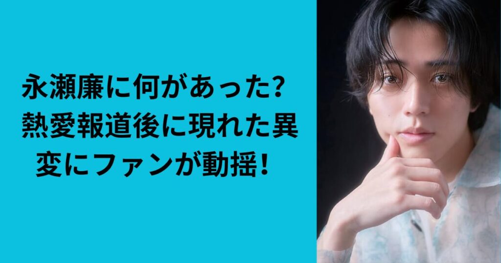 俳優業でも存在感を放つKing & Princeの永瀬廉さん。 その爽やかなルックスと誠実なキャラクターで、多くのファン を魅了しています。 そんな永瀬廉さんですが、最近になって熱愛報道がきっかけとなった異変が各所で囁かれているのをご存じでしょうか...