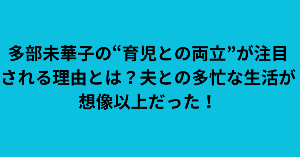実力派として高く評価されている多部未華子さん。 そんな多部未華子さんですが、近年では育児との両立がSNSなどで注目を集めています。 夫である熊田貴樹さんも超売れっ子フォトグラファーとして多忙な日々を送っており、 「この夫婦はどうやって育児を成...